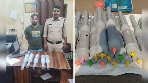 बाग सेवनीय थाना प्रभारी अमित सोनी के मुताबिक प्रधान मंडपम 80 फीट रोड कर एक युवक बोरी में कुछ बेच रहा था | पुलिस ने उसे पकड़ा तो उसने अपना नाम भय्यु चौहान बताया | न्यू आंबेडकर नगर कोलार निवासी रोड निवासी भय्यु के पास से 42 कार्बाइड गन , 29 लाइटर और कार्बाइड के टुकड़े जब्त किए गए | पुलिस ने भय्यु पर विस्फोटक पदार्थ को लापरवाही पूर्वक रखने की धारा 288 बीएनएस के तहत मामला दर्ज किया है | इसमें छह माह तक की सजा और 5000 रू तक जुर्माने की सजा का प्रावधान है |